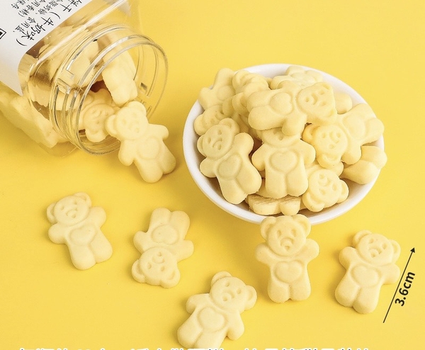 Bánh quy hình gấu đứng size to 3.6cm-MÀU KEM (hộp nhựa 138gam).