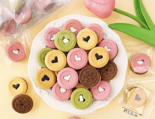 Bánh Quy hình tròn có trái tim trắng ở giữa-MIX MÀU (gói 300gam).