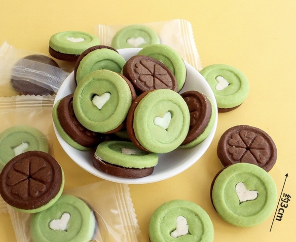 Bánh Quy hình tròn XANH có trái tim màu TRẮNG ở giữa (gói 220gam).