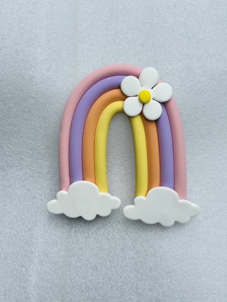 Cầu vồng đất nặn HP - mẫu gắn bông hoa (MÀU HỒNG-CAM-VÀNG) kt 12x12cm.