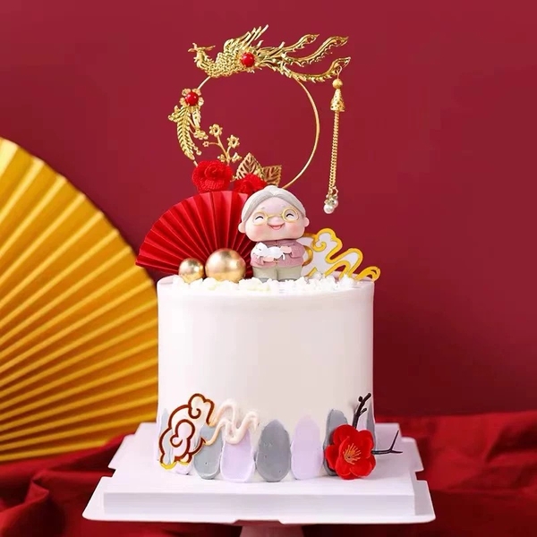Cây cắm Tết - khung tròn kim loại màu vàng gắn hình phượng hoàng.