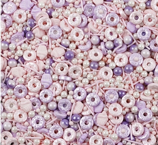 Cốm đường mix sợi, tròn, hình bánh vòng (hồng và tím nhạt).