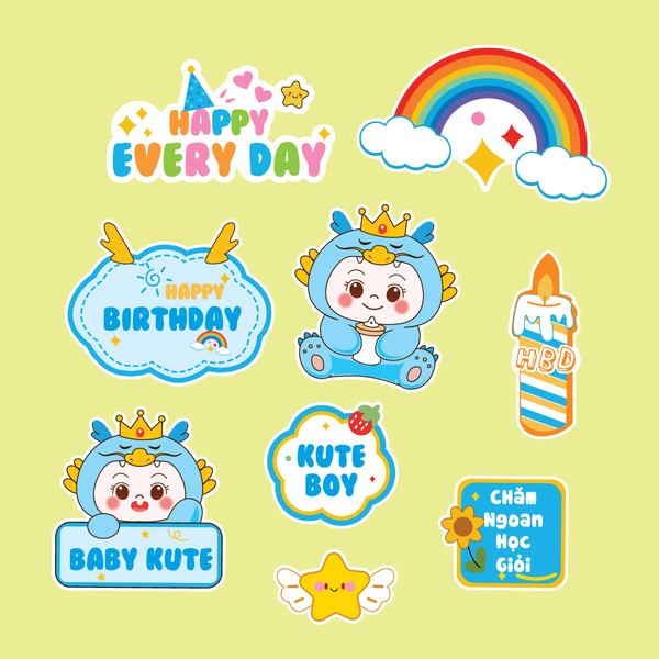 Combo 2 set giấy - bé rồng kute màu XANH + cầu vồng.