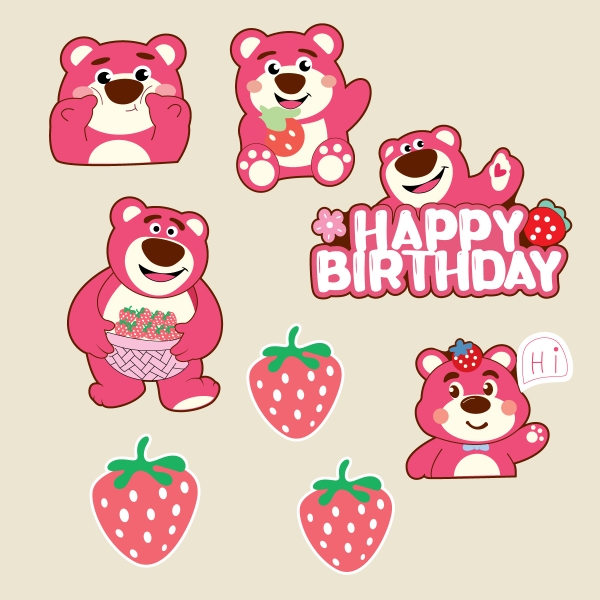 Combo 2 set giấy gấu dâu (lotso) và 3 quả dâu tây.