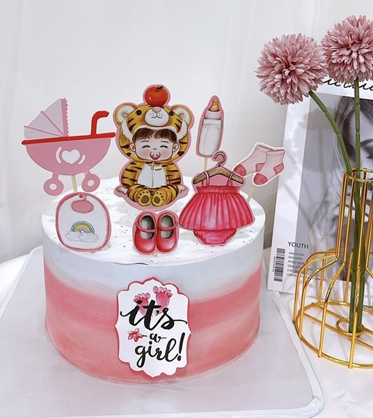 Combo 2 set giấy-Hổ vàng và váy, xe nôi -HỒNG.