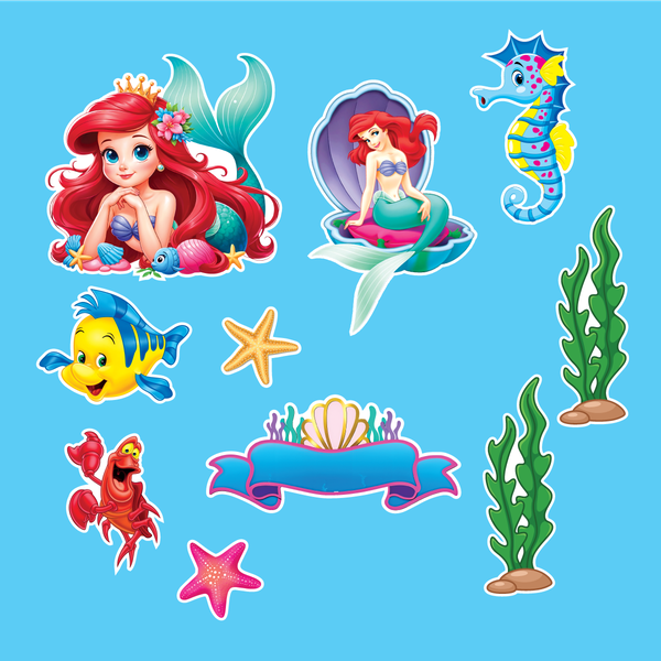 Combo 2 set giấy - Tiên cá tóc đỏ, rong biển, cá, cua (mẫu mới).