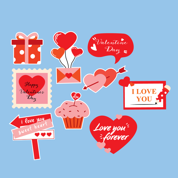 Combo 2 set giấy Valentine - trái tim, bánh, hộp quà đỏ.