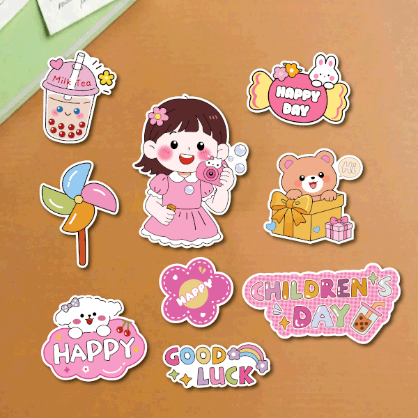Combo 5 set giấy SX- bé gái váy hồng cầm máy ảnh.