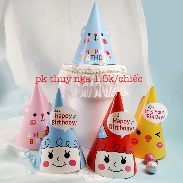 Set 10 Mũ sinh nhật hoạt hình (chỉ còn màu hồng).