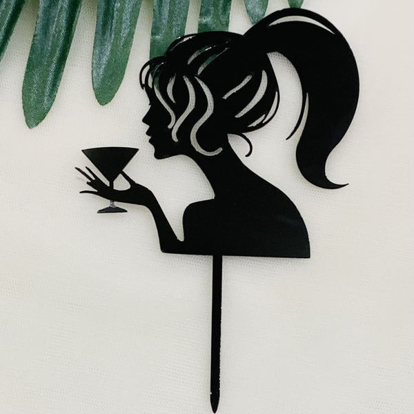 Set 10 mica cô gái cột tóc cao và ly rượu-ĐEN.