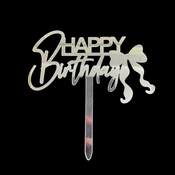 Set 10 mica HPBD gắn nơ ở cuối -MÀU BẠC.