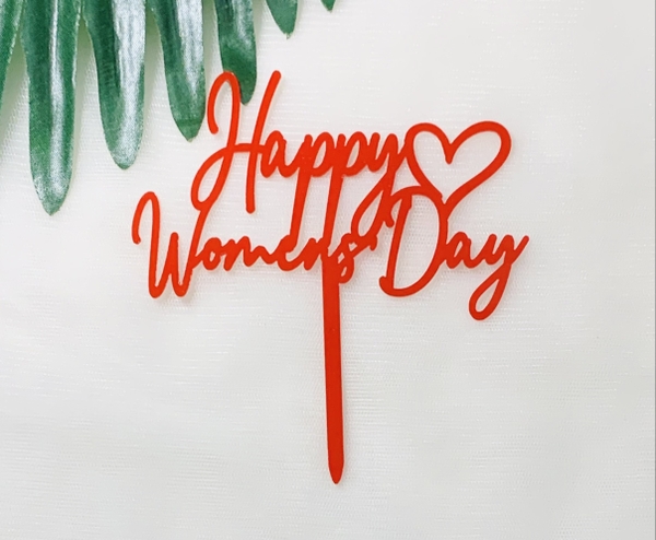 Set 10 mica Women day chữ uốn gắn trái tim-ĐỎ (Mẫu 2).