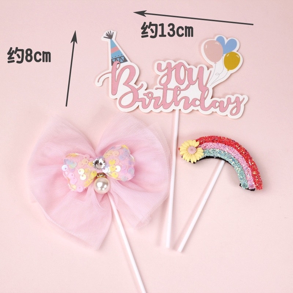 Set 3 chi tiết (nơ-cầu vồng-hpbd chữ MẢNH)-HỒNG.