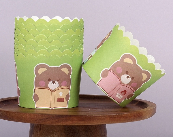 Set 50 cốc cupcake giấy kt 6x5.5x7cm - màu XANH LÁ (hình gấu).