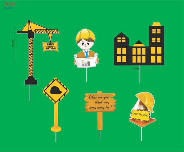 Set giấy HD - kỹ sư, tháp cẩu và biển báo.
