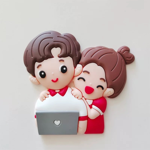 Tượng nhựa dẻo-Đôi tình yêu xem ipad.