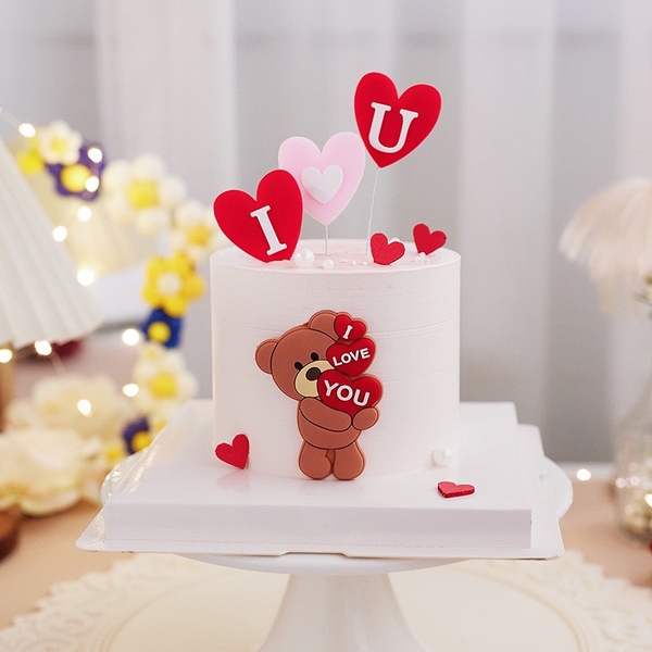 Tượng nhựa dẻo-GẤU nâu ôm chữ I love you đỏ.