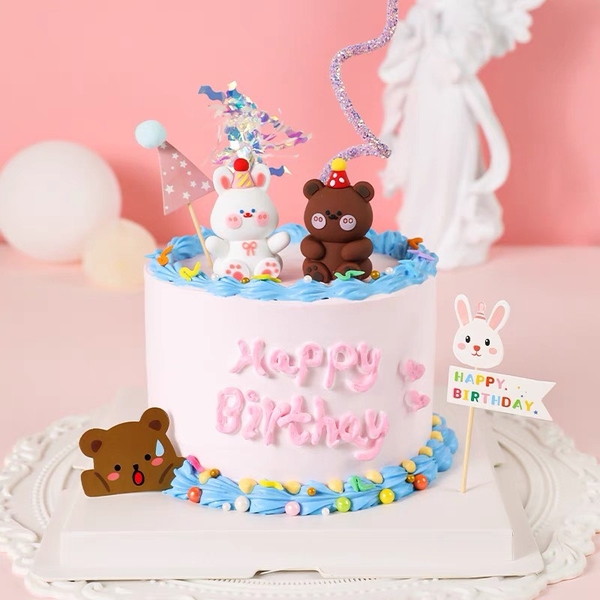 Tượng nhựa mềm size to -THỎ TRẮNG đội mũ.