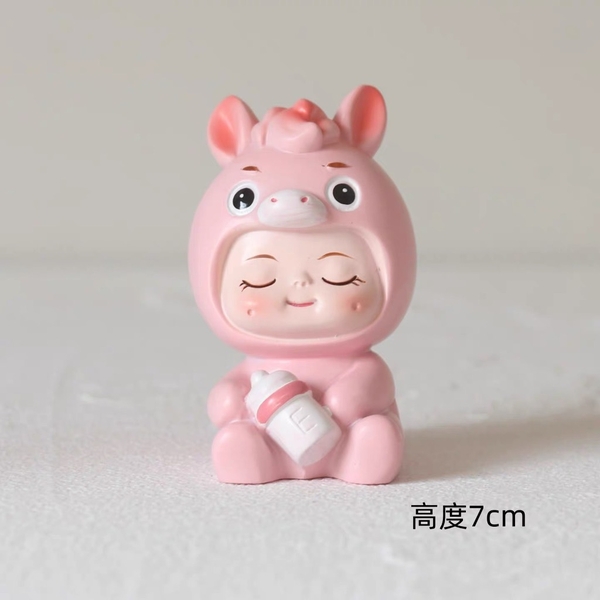 Tượng sứ -bé Ngựa HỒNG ôm bình sữa (mẫu nhắm mắt).