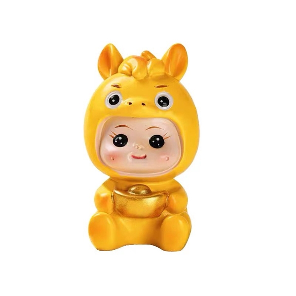 Tượng sứ -bé Ngựa vàng ôm thỏi vàng.