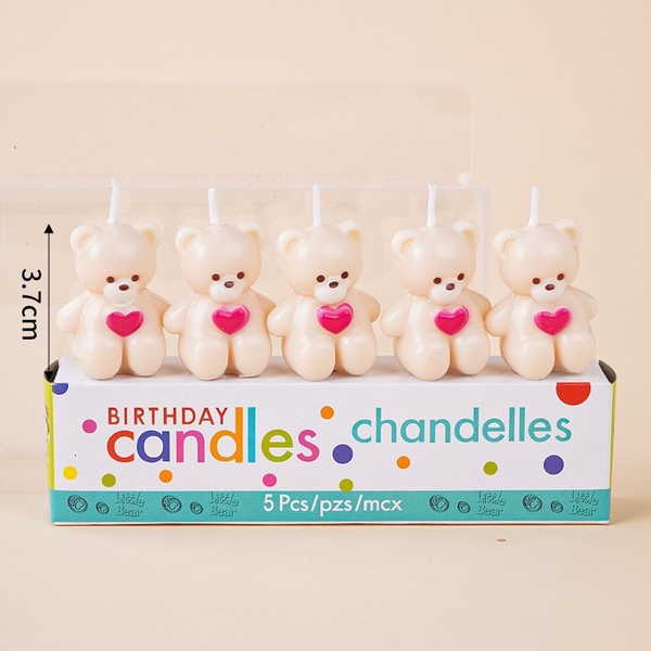 Vỉ 5 nến gấu TRẮNG tim đỏ.